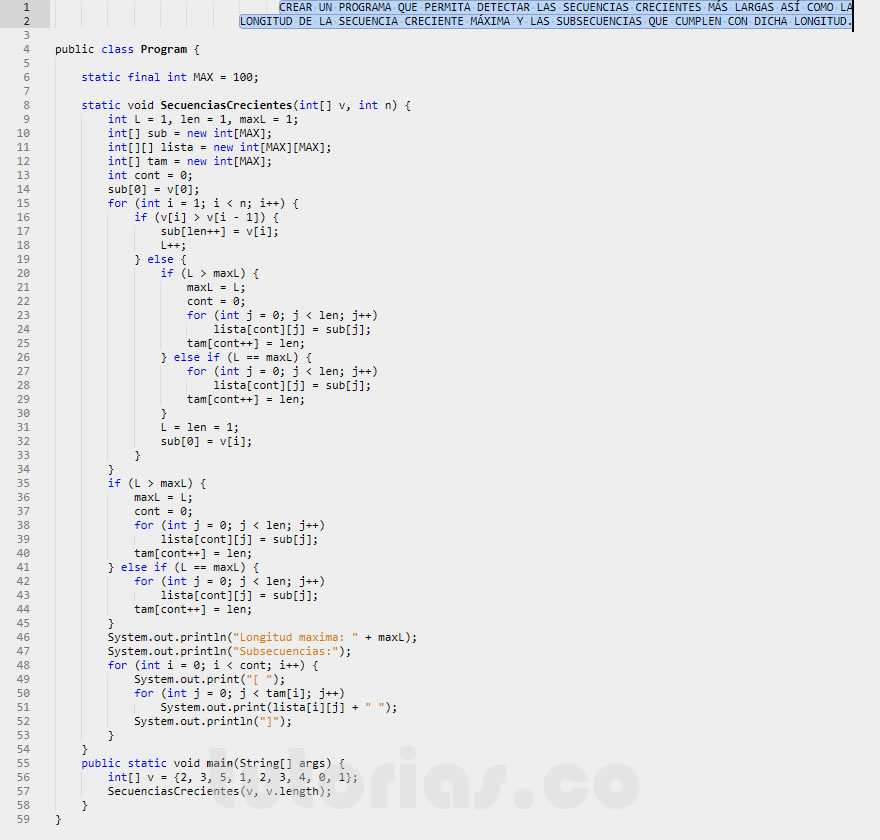 Figura. programación en java: secuencia creciente más larga